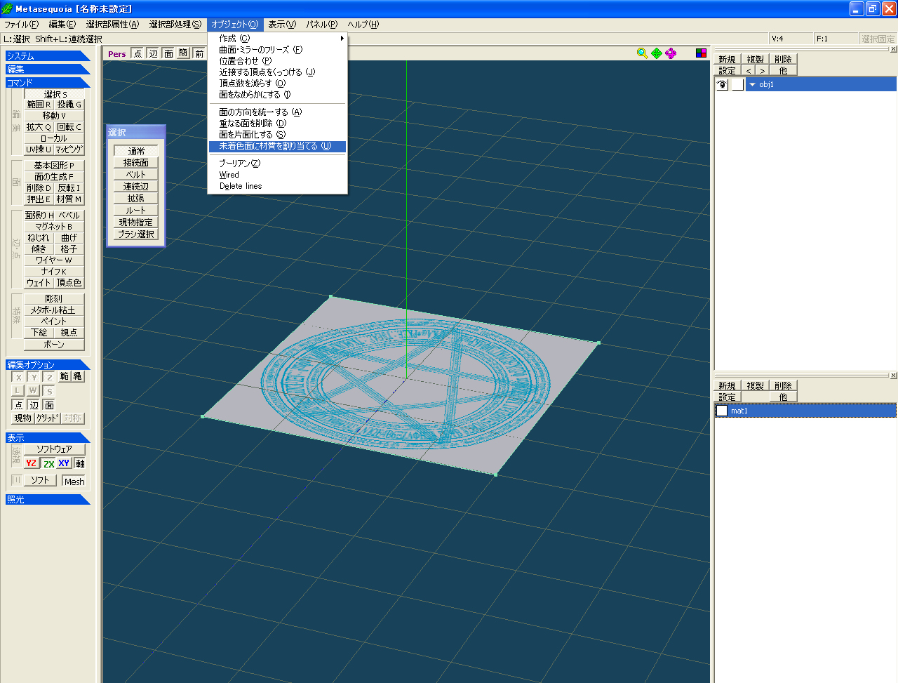 オブジェクト→未着色面に材質を割り当て